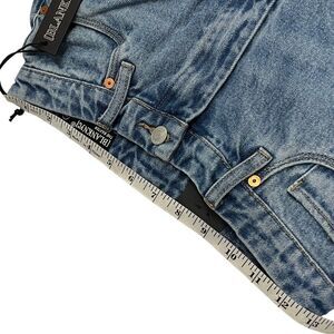 BlankNYC Jeans Womens 26 Blue Lights The Baxter Wide Leg Rib Cage Faux Leather Mixed print Club Date Night Unique Maximalist Fun Biker Blank NYC