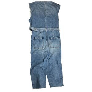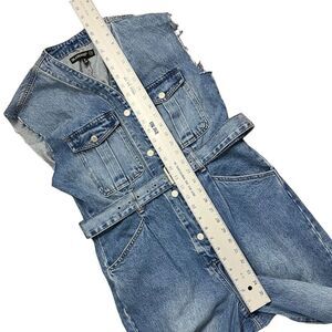 Blank NYC Jumpsuit XS Denim Straight Leg Sleeveless Snap Button Cropped Spring