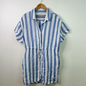 Blank NYC Linen Button Front Shirt Dress L Blue White Stripe Preppy Nautical