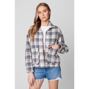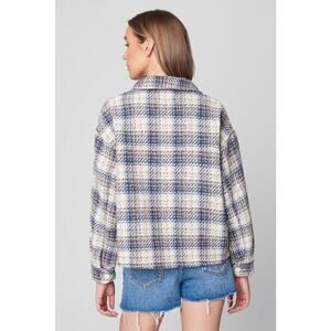 BlankNYC Once In A Lifetime Cropped Tweed Shacket Women’s S Blue Cream Brown