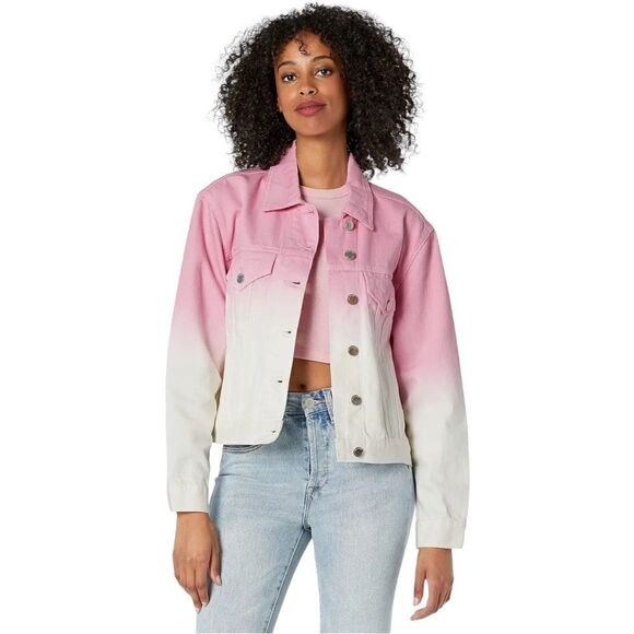 BlankNYC Pink Dip-Dyed White Twill Drop Shoulder Trucker Jacket Medium NEW