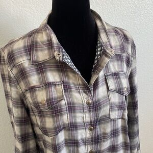 BlankNYC Plaid button Down Flannel Blouse 0020