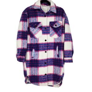 BlankNYC Prime Time Pink Blue Flannel Long Shacket Pockets Size Small