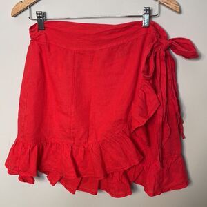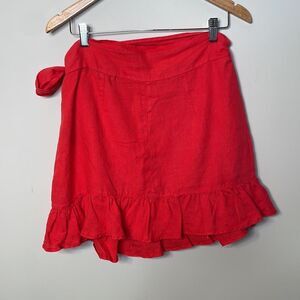 Blank NYC Red Linen Ruffle Wrap Mini Skirt