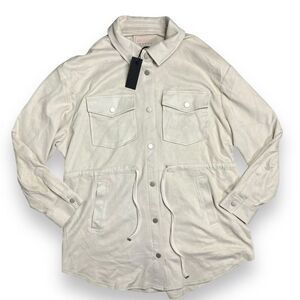 Blank NYC Shacket WMNS L Beige Snap Tied Jacket Longline Faux Suede Flap Pockets