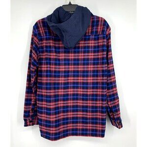 BlankNYC Shirt Mens Size Medium Button Down Plaid Hooded Long Sleeve Blue NWT