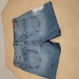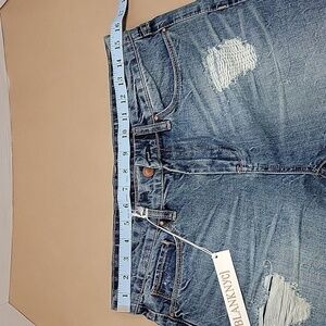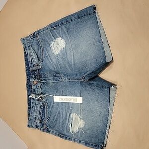 BlankNYC, Size 27, Denim Shorts, Raw Hem, Distressed, NEW with Tag. Fake Distressing (denim underneath). Classic 5 Pocket Styling with Zipper Fly and Button Closure. Please refer to measurements in photos to ensure proper fit.