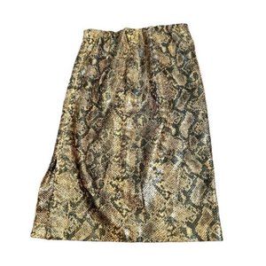 This BlankNYC A-line skirt is a stunning blend of style and comfort. The tan and black snake print on faux leather adds an edgy touch, while the knee length provides a classic silhouette. It's made of polyester and comes in size 24.