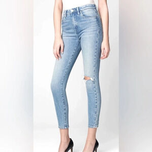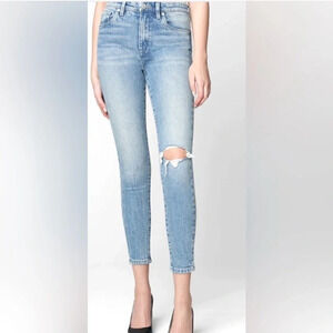 NWT BlankNYC “The Great Jones” High-Rise Skinny Jeans, 5 pocket design, zipper fly, color “No Thanks” medium wash, distressing on left knee, 99% cotton, 1% spandex, brand new condition, smoke free home