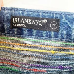 Blank NYC Varick Kick Flare Jeans Rainbow Embroidered Button Fly Raw Hem 27.
