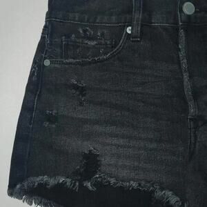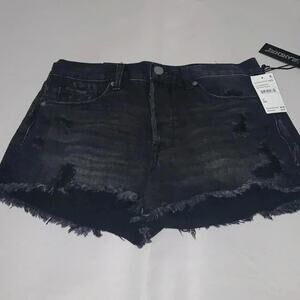 BlankNYC Washed Black Jean Shorts High Rise Button Fly Distressed Raw Hem 27 NWT