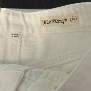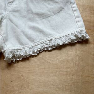 Chic Blank NYC white jean shorts with elegant lace trim. Ideal for casual wear.
