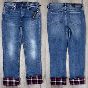 NWT super cute Blank NYC jeans. High rise. Plaid patterns. Straight leg. 5 pockets. Zipper fly closure. No flaws. No stains. Smoke free home. Waist 15" Hips 18" Rise 11" Inseam 31" (cuffed) 33 1/4" (uncuffed)