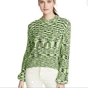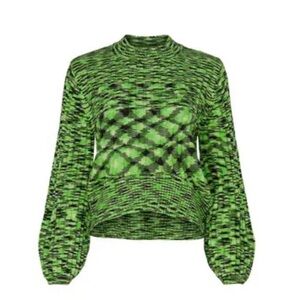 BlankNYC Women's Green The Clash Crew Neck Balloon Sleeves Sweater