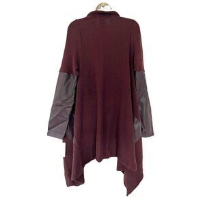 BlankNYC Womens Sz M Wine Burgundy Faux Leather Trim Cardigan Sweater NWT