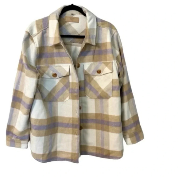 BlankNYC Women’s Trail Blazer Shacket White Multi Plaid Button Up Size L NWT