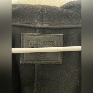 Stay warm and stylish this fall or winter with this chic BlankNYC black asymmetrical cardigan jacket in size XS. This pre-loved piece is perfect for adding a touch of edge to any outfit. The unique asymmetrical design adds a modern flair, while the cozy material will keep you comfortable in the cooler months. Made by the popular brand BlankNYC, known for its trendy and high-quality clothing, this cardigan jacket is a versatile piece that can be dressed up or down. Pair it with jeans and boots for a casual look, or wear it over a dress for a more polished ensemble. The black color makes it easy to mix and match with your existing wardrobe, making it a must-have addition to your closet. Don't miss out on this stylish and practical jacket for the upcoming season!