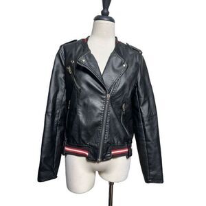BlankNYC Black Vegan Leather Varsity Moto Jacket Size Medium
