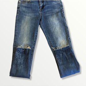 Has distressed cuffs with frayed hems