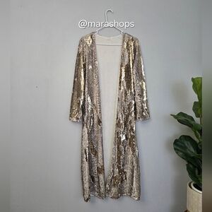 TAG: anthropologie Tuckernuck free People bohemian music festival concert country music blogger favorite Instagram ig influencer tiktok Coachella lollapalooza stagecoach Taylor swift gold snake skin print sequin long maxi cardigan new year's holiday