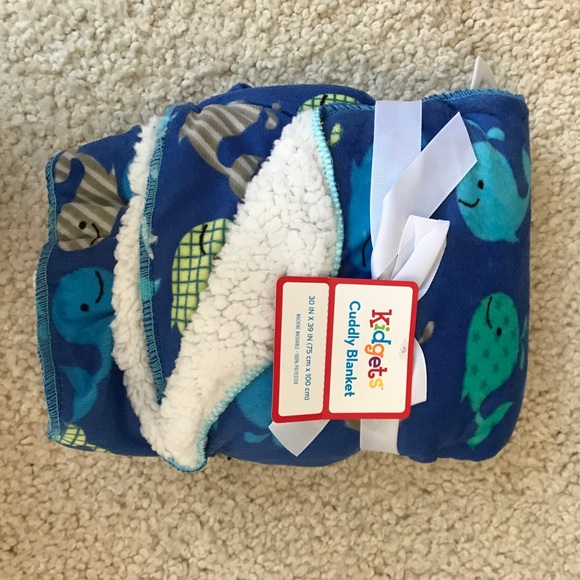 Blanket with whales on it. 30 in X 39 in