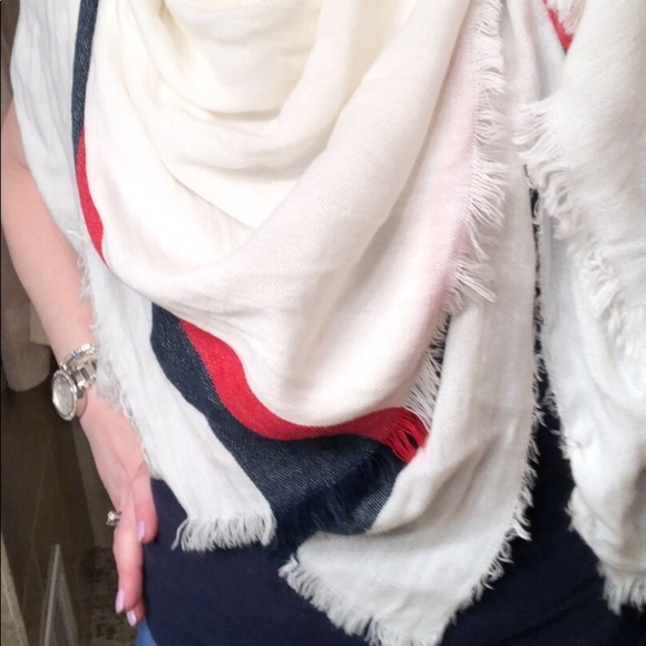 Cream, Navy, and Read Blanket Scarf never worn.