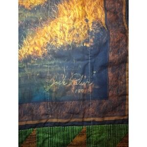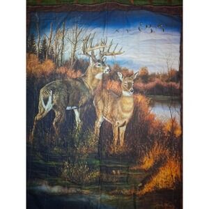 Buck and doe scene quilted blanket absolutely gorgeous perfect for a child it is 45.5 inches long and 36 inches wide no stains in perfect condition