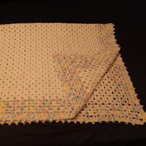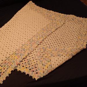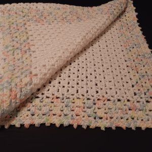 2 blankets available. Pink with flowers 24 by 24 inches and white with a border 32 by 48 inches. The price is for a white blanket with a border. Pink with flowers has a separate listing, please look in my store. Very soft yarn. Acrylic. The buyer receives a cleaned blanket. Can be used immediately without pre-cleaning. Knitting a blanket is quite a labor-intensive task and requires several days of work. I always clean my items before selling them with a special hypoallergenic cleaner. I understand. that these products are intended for small children and I am always very responsible about cleaning the product after production. Photo taken in artificial and natural lighting. Any questions please