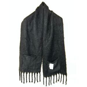 Blanket SCARF w/ Pockets Brushed Wooly Heavy Black Fringe Lauren Conrad NEW