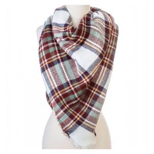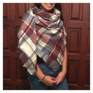 This listing is for a brand new blanket scarf. Plaid scarf. Very soft and comfortable. 100% acrylic. Dimension: 58"x58". Price is firm. Bundle and save.
