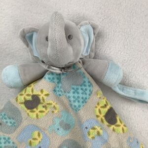 Blankets & Beyond Elephant Lovey Plush Stuffed Baby Security Blanket Gray Blue.