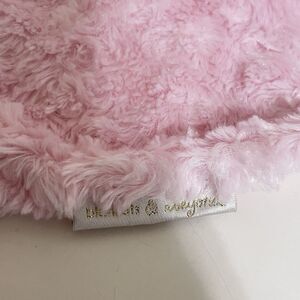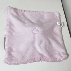 Blankets & Beyond Pink Puppy Dog Security Blanket Lovey Rosette Swirl Lovie Blankie. The dog has gray eyes and a gray nose. Has been used and washed, so normal wash wear and matting to the plush material. No other issues and still has a ton of life left, but is not perfect. Good Used Condition.
