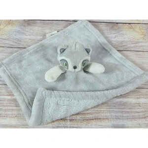 Blankets & Beyond Plush Raccoon Lovey Security Blanket Gray White 11 inches