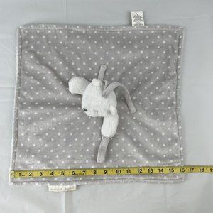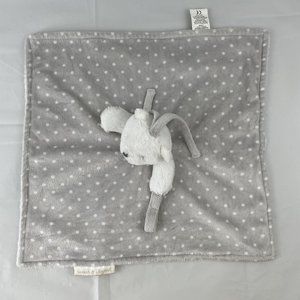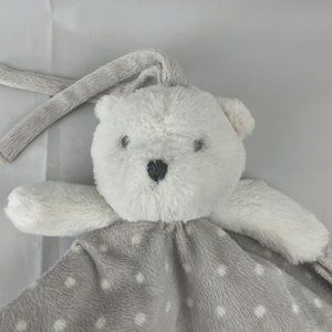 Blankets & Beyond Teddy Bear Grey White Polka Dot Lovey Blanket Pacifier Holder