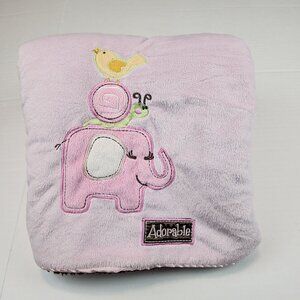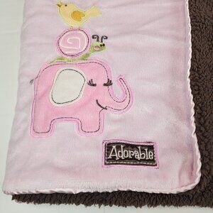 Blankets and Beyond pink brown baby blanket Elephant Snail Bird Adorable