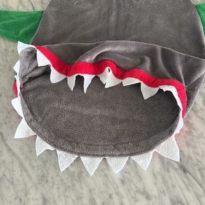 Super cute blanket for shark lovers out there! Blankietails.com makes a shark tail blanket to slide your legs into. This blanket is gently used and is 4 feet long. Some minor threading.