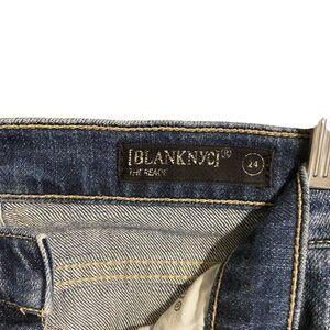 Elevate your style game with these Blanknyc jeans, perfect for any beach or streetwear occasion. The distressed and raw hem accents give a grunge and retro vibe, while the 5-pocket design ensures functionality. These jeans are made of a denim fabric wash with a medium grind, featuring a solid blue color and a low rise fit (6.5-8.5 in). The ankle style and regular fit make them suitable for any season, whether it be winter, summer, fall, or spring. The zip and button closure provides a secure fit, and the spandex and cotton material makes them comfortable and machine washable. These jeans are a must-have for any fashion-forward woman, and they come in a size 24 with a waist size of 26 in.
