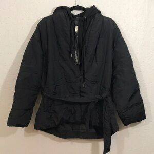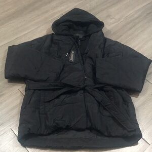 Blanknyc NWT All Black FAIR SHAKE Puffer Hooded Waist Tie JACKET size S