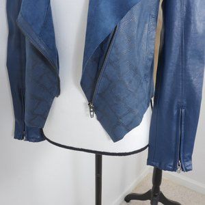 Blanknyc Teal Blue Faux Leather Snake Print Moto Style Side Pockets Size XS Zipper Front Jacket