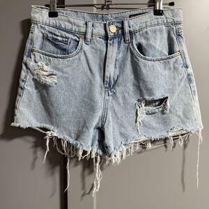 Blanknyc Women The Barrow High Rise Distressed Cut Off Denim Shorts Blue 28