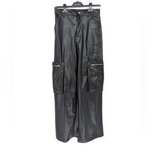 wide leg pants black color leather with big pockets, the zippers are working perfectly