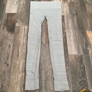 Blanqi Leggings Womens Maternity Dove Gray Striped SportSupport Athletic Sz XL.