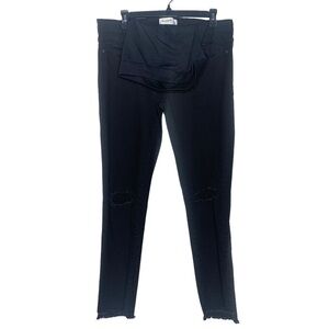 Blanqi Maternity Belly Support Skinny Jeans in Black Knee Slit Wash