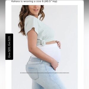 Excellent used condition! Blanqi brand maternity and postpartum skinny jeans. Color is called “light destroy wash”, with front distressing. Faux button closure makes it easy to fake a front tuck while still having belly support. Designed to support bodies through maternity and into postpartum. Stretchy and comfy!