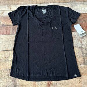 Blanqi short sleeve deep crewneck babe pocket tee in black -XS