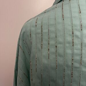 Blanque Boxy Oversized Textured Mint Button Down Lagenlook Art To Wear Sz 0 Sm