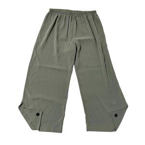 Blanque Crepe Cropped Wide-Leg Pull-On Art-to-Wear Lagenlook Pants Green size Large