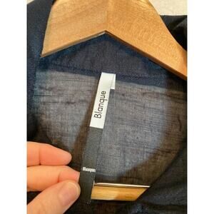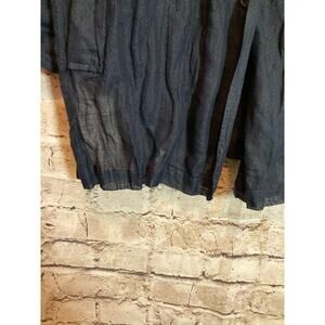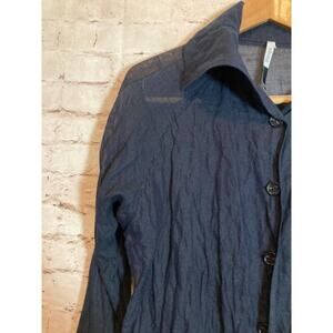 Blanque Top Womens Large Midnight Blue Button Up Shimmer Crinkle Pleat Lagenlook