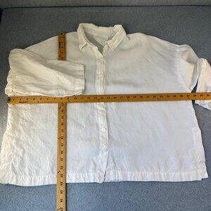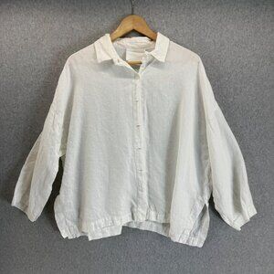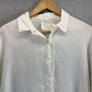 Blanque White Linen Button Front Blouse Collared Size 0 / One Size Lagenlook