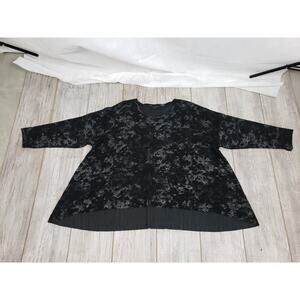 Blanque Womens Asymmetrical Jacquard Lagenlook Black Size 2 Pullover 3/4 Sleeve